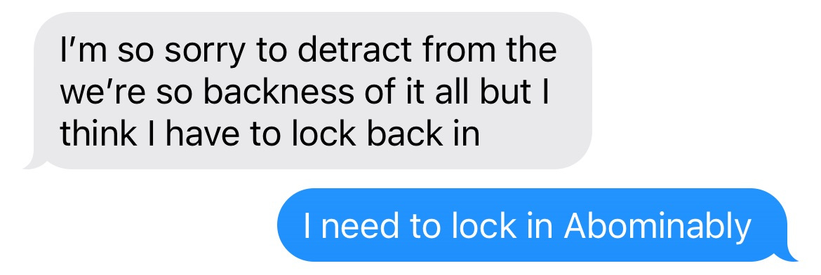 I don't have great attention but it's okay. I used to work with a woman who would just kind of naturally descend into tasks, fully. She did this without drugs. If I wanted to talk to her I had to say her name pointedly, maybe give a little wave. It made me so envious. In a room, my mind is always listening a bit to the room. My peripheral vision is never entirely ignored. I suppose this would be good in an emergency but it's great to lock in. I know that my locking in is a very poor replica of what locking in really looks like.