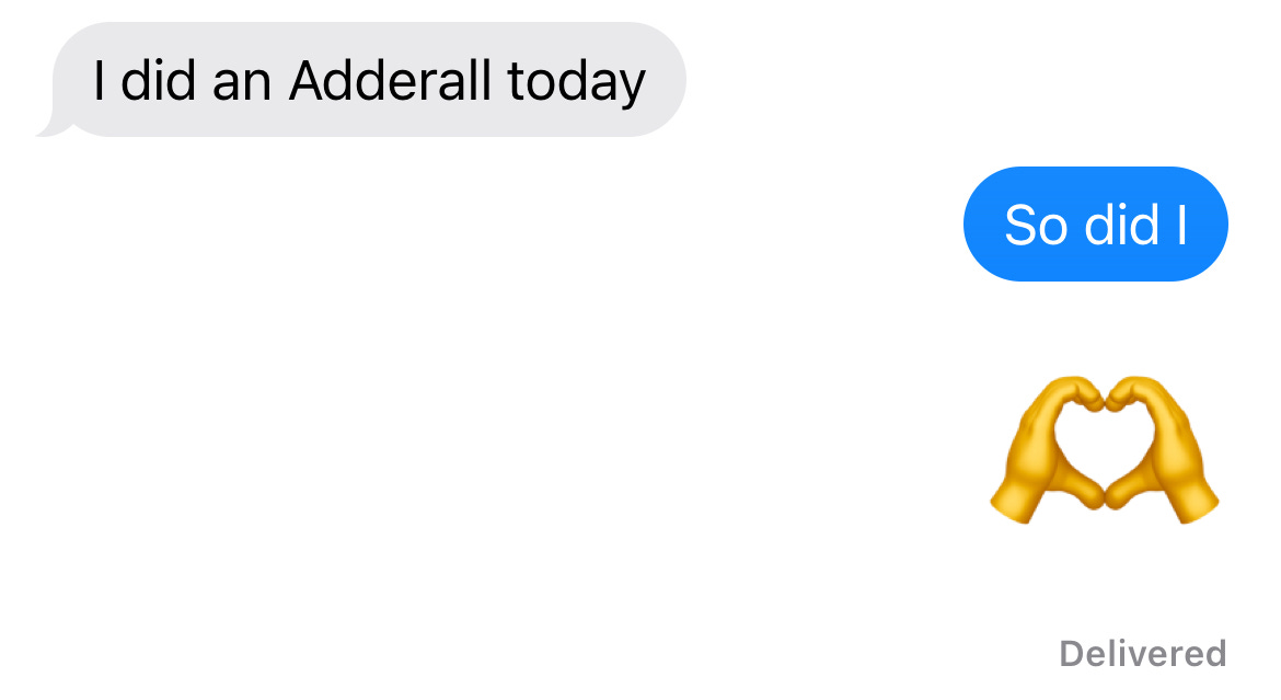 The psychiatrist I was referred to—a gay guy in his late thirties who had that particular Manhattanite energy of someone who’s been routinely prescribing controlled substances to high-functioning neurotics and has developed a very efficient system for processing them—told me during our thirty minute telehealth appointment that yes, 10mg Adderall XR seemed reasonable, that no I shouldn’t take it every morning, just on days when I needed to focus, and that before he could send the prescription I’d need to get a physical exam to make sure the amphetamines wouldn’t make my heart explode or whatever cardiovascular catastrophe he was legally obligated to screen for.